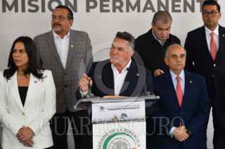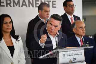 CIUDAD DE MÉXICO, 26JUNIO2025.- Alejandro Moreno Cárdenas, senador del PRI, junto a legisladores priístas, ofreció conferencia para solicitar una comparecencia de los socios integrantes de CiBanco, Intercam y Vector, ante el Senado de la República, luego de ser señalados por el Departamento del Tesoro de los Estados Unidos por su presunta participación de lavado de dinero asociado al tráfico de fentanilo. FOTO: MARIO JASSO/CUARTOSCURO.COM