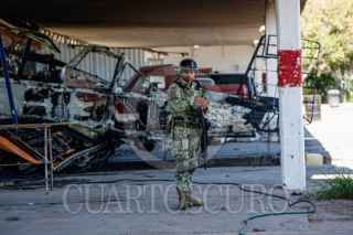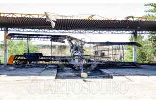 NAVOLATO, SINALOA, 26JUNIO2025.- Una avioneta Stearman de la Segunda Guerra Mundial fue destruida tras un ataque registrado la tarde de este jueves en la pista La Luna, ubicada en la sindicatura de Villa Juárez, Navolato. Sujetos armados irrumpieron en el aeródromo, abrieron fuego contra la aeronave, le prendieron fuego antes de huir con rumbo desconocido. Testigos relataron que escucharon varias detonaciones, seguidas de una explosión y el incendio de la aeronave, el saldo fue de cuantiosos daños materiales sin ninguna persona lesionada. El pasado 28 de abril ya había sido atacada a balazos el mismo aeródromo, en la cual resultó afectada otra avioneta. FOTO: JOSÉ BETANZOS ZÁRATE/CUARTOSCURO.COM