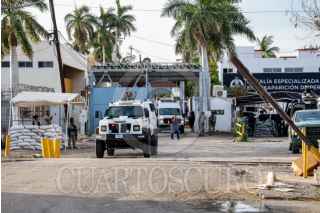 CULIACÁN, SINALOA, 26JUNIO 2025.- Una riña a balazos al interior del penal de Aguaruto dejó un reo muerto y tres más heridos la tarde de este jueves en Culiacán, generando una inmediata movilización de cuerpos de seguridad y emergencia. Los lesionados fueron trasladados en ambulancias de la Cruz Roja, escoltadas por un fuerte operativo, hacia distintos hospitales de la ciudad donde reciben atención médica. En tanto, personal del Servicio Médico Forense (Semefo) acudió al centro penitenciario para levantar el cuerpo del interno fallecido. Al penal arribo el Secretario de Seguridad Pública Óscar Rentería Schazarino, bajo un fuerte dispositivo de seguridad. FOTO: JOSÉ BETANZOS ZÁRATE/CUARTOSCURO.COM