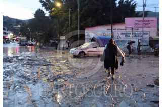 CHILPANCINGO, GUERRERO, 26JUNIO2025.- Una fuerte tromba sorprendió la tarde de este jueves a habitantes del norte de Chilpancingo, dejando un saldo de al menos 15 vehículos inundados, varios más arrastrados por la corriente e inundaciones en la tienda comercial Aurrera Norte. La intensa lluvia comenzó minutos antes de las 6:00 de la tarde y provocó escurrimientos desde las colonias ubicadas en las partes altas, aledañas al deportivo “Hermanos Galeana”. De acuerdo con informes oficiales, una gran corriente de agua se generó en cuestión de minutos, arrastrando una pipa, al menos tres automóviles y varias motocicletas. FOTO: DASSAEV TÉLLEZ ADAME/CUARTOSCURO.COM