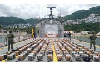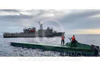 COSTAS DE GUERRERO, GUERRERO, 27JUNIO2025.- En una operación marítima encabezada por elementos de la Secretaría de Marina (Semar) a través de la Armada de México en funciones de Guardia Costera, en coordinación con la Fiscalía General de la República (FGR), Secretaría de la Defensa Nacional (Defensa), Guardia Nacional (GN) y Secretaría de Seguridad y Protección Ciudadana (SSPC), personal naval localizaron y aseguraron una embarcación tipo semisumergible o de bajo perfil, con tres tripulantes en su interior y 180 bultos con un peso aproximado de 3.5 toneladas de presunta cocaína. La carga y embarcación ilícita fueron aseguradas y el personal detenido puestos a disposición del agente del Ministerio Público en la FGR, quien definirá su situación legal. FOTO: SECRETARÍA DE MARINA/CUARTOSCURO.COM