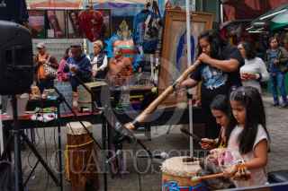 CIUDAD DE MÉXICO, 27JUNIO2025.- Artesanas y artesanos tocan música durante la inauguración del mural del artista Saner en el Mercado Artesanal Mexicano de Coyoacán, espacio con décadas de historia y espacio en que artesanas y artesanos de la República han encontrado exposición y la manera de comercializar sus productos. FOTO: GALO CAÑAS/CUARTOSCURO.COM
