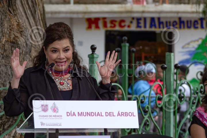 CIUDAD DE MÉXICO 27JUNIO2025.- Clara Brugada, jefa de Gobierno, durante la conmemoración del Día del Árbol, declarando un ahuehuete de la colonia Santa Catarina como "Árbol Patrimonial" en la alcaldia Azcapotzalco. FOTO:ROGELIO MORALES /CUARTOSCURO.COM
