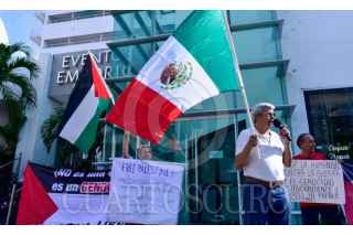 ACAPULCO, GUERRERO, 27JUNIO2025.- Organizaciones Sociales pro Palestina se manifestaron frente al Consulado de Estados Unidos en Acapulco contra el genocidio del pueblo palestino que el gobierno de Israel continúa con el apoyo de Estados Unidos. FOTO: CARLOS CARBAJAL/CUARTOSCURO.COM