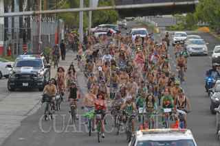 GUADALAJARA, JALISCO, 28JUNIO2025.- Este sábado se realizó la 14ª edición de la World Naked Bike Ride Guadalajara, en la que participaron decenas de personas con el objetivo de visibilizar a los ciclistas ante los automovilistas y generar conciencia sobre la seguridad vial. FOTO: FERNANDO CARRANZA GARCÍA / CUARTOSCURO.COM