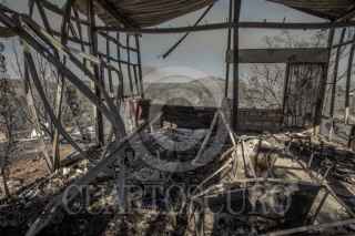 TECATE, BAJA CALIFORNIA, 29JUNIO2025.- Ardilla calcinada tras los incendios Forestales en el Rancho La Haciendo en el poblado de la Rumorosa. Desde el 16 de junio, incendios forestales en Tecate han arrasado más de 12 mil hectáreas, destruyendo viviendas y afectando la flora, fauna y calidad del aire. Con un 70?control, el fuego sigue activo en zonas como La Rumorosa, donde se mantiene la prealerta de evacuación. Más de 200 elementos de emergencia trabajan en la contención. FOTO KAREN CASTAÑEDA/CUARTOSCURO.COM