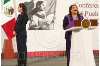 CIUDAD DE MÉXICO. 30JUNIO2025.- Claudia Sheinbaum Pardo, mandataria del país en la conferencia del pueblo, en el salón Tesorería del Palacio Nacional. FOTO: VICTORIA VALTIERRA/CUARTOSCURO.COM