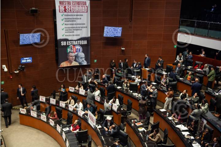 CIUDAD DE MÉXICO, 30JUNIO2025.- Aspecto de Sesión extraordinaria en la Cámara de senadores donde hoy con 75 votos a favor y 34 en contra, se aprueba en lo general y los artículos no reservados del dictamen que crea la Ley de la Guardia Nacional y reforma diversas leyes, en materia de seguridad. FOTO: ANDREA MURCIA /CUARTOSCURO.COM