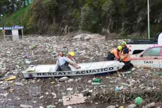 CIUDAD DE MÉXICO, 30JUNIO2025.- Tras las intensas lluvias del día de ayer dos vehículos fueron arrastrados a la presa Mixcoac, elementos de PC de la alcaldía Álvaro Obregón trabajaron en la zona para rescatar las unidades. FOTO: CUARTOSCURO.COM