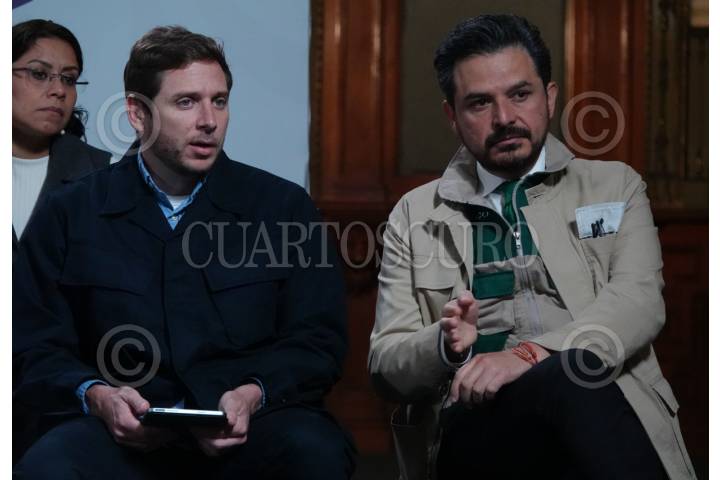 CIUDAD DE MÉXICO, 01JULIO2025.- Eduardo Clark, subsecretario de Integración y desarrollo del sector salud, y Zoé Robledo, titular del IMSS, durante la conferencia matutina desde Palacio Nacional en la que se presentó el informe de salud, así como la firma y anuncio de la integración de la Coordinación General del Plan Nacional de Zonas Deprimidas y Grupos Marginados (COPLAMAR) al Instituto Mexicano del Seguro Social (IMSS). FOTO: GALO CAÑAS/CUARTOSCURO.COM