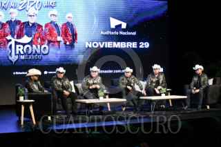 CIUDAD DE MÉXICO, 01JULIO2025.- La banda duranguense "Trono de México", durante su intervención en conferencia de prensa para dar detalles sobre su próxima presentación en el Auditorio Nacional como parte de la gira "Mi 2DO Aire". FOTO: MARIO JASSO/CUARTOSCURO.COM