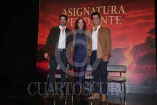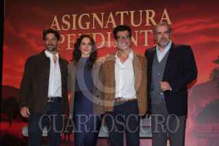 CIUDAD DE MÉXICO, 01JULIO2025. David Chocarro, Andrés Palacios y Susana González junto al productor Carlos Moreno durante la presentación de los protagonistas de la nueva telenovela “Asignatura pendiente, de mi vida” en instalaciones de Televisa San Ángel. FOTO: EDGAR NEGRETE LIRA/CUARTOSCURO.COM