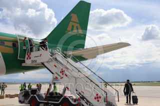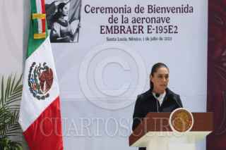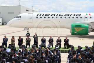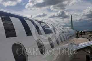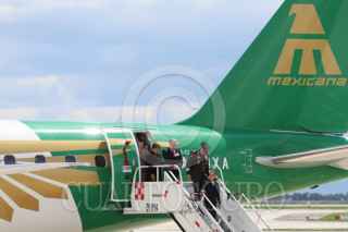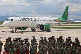ZUMPANGO, EDOMEX, 01JULIO2025.- Elementos de la Guardia Nacional se retiran de la pista luego del aterrizaje de la nueva aeronave de Mexicana de Aviación. FOTO: DANIEL AUGUSTO/ CUARTOSCURO.COM