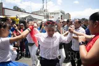 CIUDAD DE MÉXICO, 01JULIO2025.- Vista paorámica en el cruce de Eje 1 Norte y Av. del Trabajo, en Tepito, se realizó un homenaje a Héctor Lavoe, convocado por la Secretaría de Cultura capitalina. Participaron sonideros y clubes de baile en una coreografía colectiva titulada “La Salsa Más Grande”, con música del cantante. El acto formó parte de las actividades relacionadas con el patrimonio cultural sonidero de la Ciudad de México. FOTO: TOMÁS PÉREZ DE LA CRUZ/CUARTOSCURO.COM