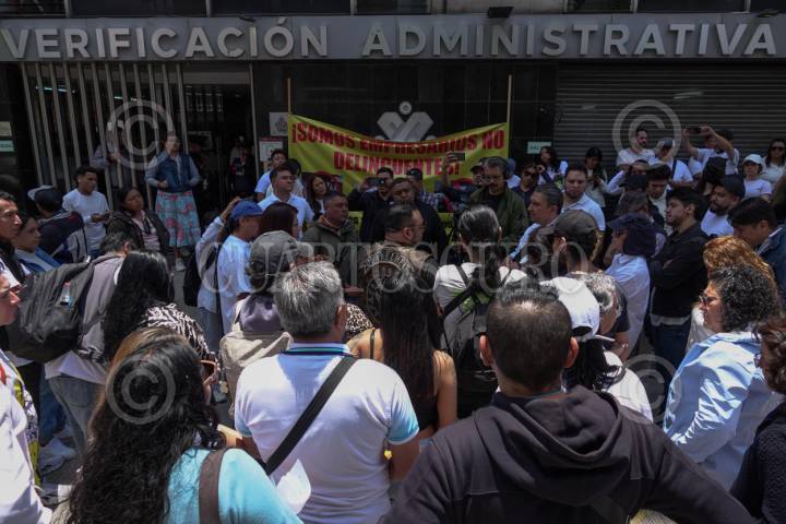 CIUDAD DE MÉXICO 02JULIO2025.- Empresarios y trabajadores principalmente del sector de bares y restaurantes se manifestaron a las afueras del Instituto de Verificación Administrativa (INVEA), para exigir una reunión con autoridades luego de supuestos cierres a locales de manera irregular. FOTO:ROGELIO MORALES /CUARTOSCURO.COM