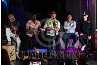 CIUDAD DE MÉXICO, 02JULIO2025.- One Drop Scott y Reggie Stephens, ex estrella de la NFL y actual rapero de la Banda ofrecieron conferencia de prensa conferencia de prensa en restaurante de la colonia Roma para hablar sobre su visita a México y su proyecto como músicos. FOTO: ANDREA MURCIA /CUARTOSCURO.COM