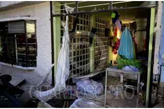 GUADALUPE, ZACATECAS, 02JULIO2025.- Elementos de seguridad y protección civil acordonaron la vivienda marcada con el número 29, en la colonia Bufa 1, luego de una explosión por acumulación de gas que dejó a dos menores y dos adultos mayores lesionados. La zona fue asegurada para facilitar las labores de rescate y prevenir riesgos adicionales. FOTO: GENARO NATERA / CUARTOSCURO.COM