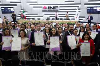 CIUDAD DE MÉXICO, 03JULIO2025.- Entrega de constancias de mayoría para jueces y magistrados en el INE. FOTO: DANIEL AUGUSTO/ CUARTOSCURO.COM