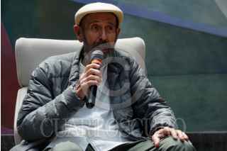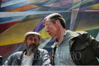 CIUDAD DE MÉXICO, 03JULIO2025.- El artista plástico Arnaldo Coen y Pedro Romero de Terreros durante la inauguración de su mural "Mutua presencia" en las inmediaciones de la Nacional Monte de Piedad, en el Centro Histórico. FOTO: GALO CAÑAS/CUARTOSCURO.COM