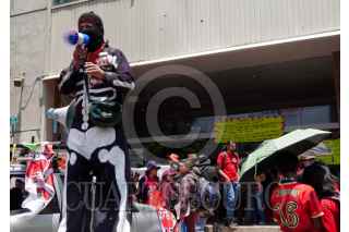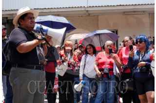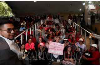 CIUDAD DE MÉXICO, 03JULIO2025.- Pedro Hernández, dirigente de la sección 9 de la Coordinadora Nacional de Trabajores de la Educación (CNTE), ofreció una conferencia tras la toma de la Coordinación General de Recursos Humanos de la Secretaría de Educación Pública (SEP) debido al descuento salarial que autoridades implementaron tras el paro nacional. FOTO: GALO CAÑAS/CUARTOSCURO.COM