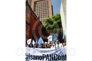 CIUDAD DE MÉXICO. 03JULIO2025.- Panistas se manifestaron frente a la Secretaría de Relaciones Exteriores, en avenida Juárez del Centro Histórico. Demandaron a la SRE, acciones para el regreso de migrantes de Estados Unidos. FOTO: VICTORIA VALTIERRA/CUARTOSCURO.COM