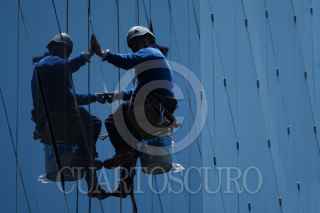 CIUDAD DE MÉXICO, 03JULIO2025.- Desde las alturas, un limpiavidrios colocó cinta sobre los vidrios de un edificio en Avenida Paseo de la Reforma. FOTO: GRACIELA LÓPEZ/CUARTOSCURO.COM