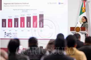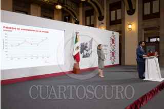 CIUDAD DE MÉXICO 04JULIO2025.- Alejandro Svarch Pérez, titular del IMSS Bienestar junto a Claudia Sheinbaum, presidenta de México durante la Conferencia del Pueblo desde el Salón Tesorería en Palacio Nacional FOTO: PRESIDENCIA /CUARTOSCURO.COM