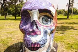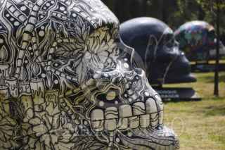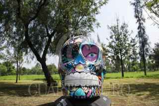 CIUDAD DE MÉXICO. 04JULIO2025.- A partir de hoy en el Parque Aragón, de la alcaldía Gustavo A. Madero, se presenta la muestra "MexiCráneos", una muestra de varios artistas nacionales, y que realiza la secretaria de Cultura de la Capital. FOTO: VICTORIA VALTIERRA/CUARTOSCURO.COM