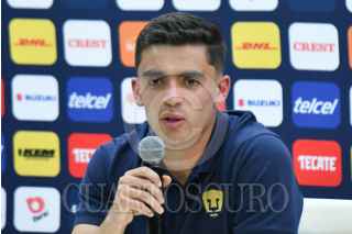 CIUDAD DE MÉXICO, 04JULIO2025.- Rodrigo López, mediocampista de los Pumas, durante conferencia de prensa en las instalaciones de "La Cantera" Guillermo Aguilar Álvarez, Jr. de la Universidad Nacional Autónoma de México (UNAM) previo al partido amistoso frente al Club Deportivo Leganés el próximo domingo 7 de julio. FOTO: MARIO JASSO/CUARTOSCURO.COM