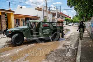 CULIACÁN, SINALOA, 04JULIO2025.- Un ataque armado registrado frente a una primaria de la colonia 10 de Mayo, en Culiacán, dejó como saldo al menos un menor de edad herido. El hecho ocurrió, sobre la calle Geranio, entre las avenidas Patria y 15 de Septiembre, donde un automóvil Nissan Sentra gris fue rafagueado por sujetos armados. Extraoficialmente, se señala que un hombre habría sido privado de la libertad en el mismo lugar, aunque dicha versión no ha sido confirmada por las autoridades. En el ataque también resultó afectada una camioneta tipo Van perteneciente a una florería, alcanzada por balas perdidas mientras circulaba por la zona. FOTO: JOSÉ BETANZOS ZÁRATE/CUARTOSCURO.COM