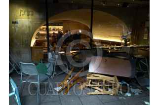 CIUDAD DE MÉXICO, 04JULIO2025.– Varios establecimientos resultaron con daños durante la primera protesta antigentrificación, realizada en el parque México. FOTO: ROGELIO MORALES /CUARTOSCURO.COM