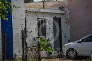 CULIACÁN, SINALOA, 05JULIO2025.– Una vivienda ubicada en la calle Eligio Ancona, entre las avenidas Ernesto Damy y General Fernando Cuén, presentó más de 200 impactos de arma de fuego en fachada, cristales, puertas y ventanas tras una balacera registrada en el fraccionamiento Antonio Nakayama, sector Barrancos. Una unidad color gris, estacionada en la cochera, también resultó con daños. FOTO: JOSÉ BETANZOS ZÁRATE /CUARTOSCURO.COM