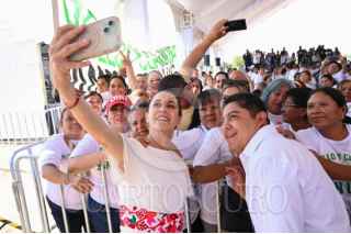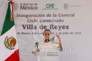 VILLA DE REYES, SAN LUIS POTOSÍ, 05JULIO2025.- Claudia Sheinbaum, presidenta de México, durante el acto protocolario por la inauguración de la Central Ciclo Combinado Villa de Reyes. FOTO: PRESIDENCIA/CUARTOSCURO.COM