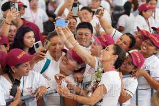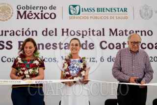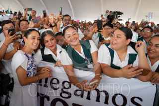 COATZACOALCOS, VERACRUZ, 06JUNIO2025.- Claudia Sheinbaum Pardo, Presidenta de México, acompañada de decenas de enfermeras, durante la inauguración Hospital Materno Infantil IMSS-Bienestar Coatzacoalcos. Al evento acudieron decenas de enfermeras del IMSS. FOTO: PRESIDENCIA/CUARTOSCURO.COM