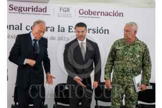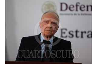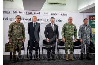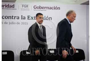 CIUDAD DE MÉXICO, 06JULIO2025.- Alejandro Gertz Manero, fiscal general de México; Omar García Harfuch, secretario de seguridad y protección ciudadana; Raymundo Pedro Morales Ángeles, secretario de Marina; Ricardo Trevilla Trejo, secretario de la SEDENA y Hernán Cortés Hernández, Comandante de la Guardia Nacional, durante conferencia de prensa dedicada al tema de seguridad. FOTO: ANDREA MURCIA /CUARTOSCURO.COM