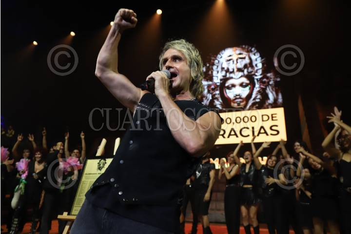 CIUDAD DE MÉXICO, 06JULIO2025.- Nacho Cano, productor de Malinche El Musical, celebra con el elenco y el público las 100 funciones del espectáculo. FOTO: DANIEL AUGUSTO/ CUARTOSCURO.COM