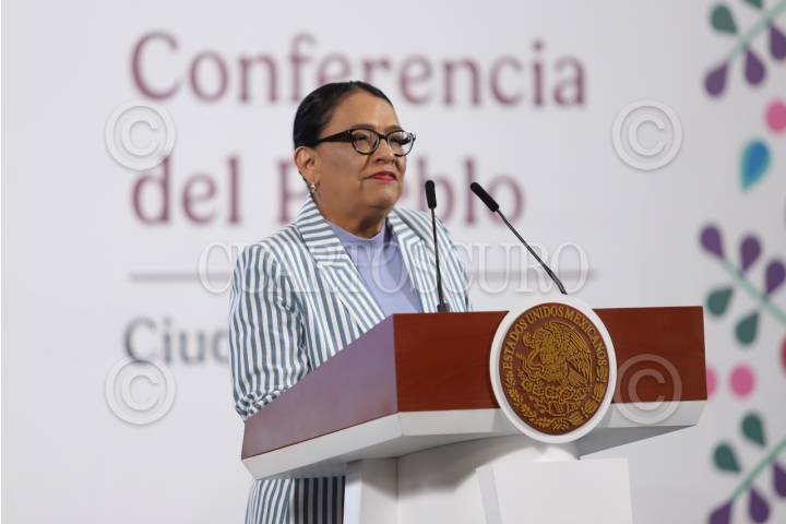 CIUDAD DE MÉXICO, 08JULIO2025.- Rosa Icela Rodríguez, secretaria de Gobernación, durante su participación en la conferencia matutina. FOTO: DANIEL AUGUSTO/ CUARTOSCURO.COM