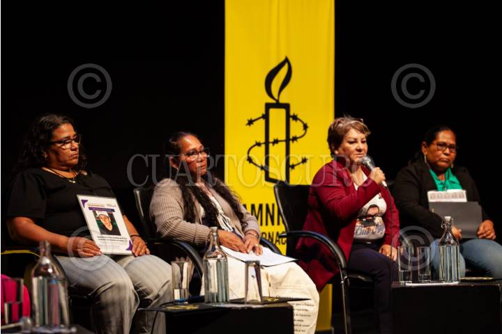 CIUDAD DE MÉXICO, 08JULIO2025.- Las madres buscadoras: Beatriz Zapoteco, Norma Isabel Cruz, Araceli Rodríguez Nava y María Elisabeth Martínez encabezaron el informe “Desaparecer otra vez, violencias y afectaciones que enfrentan las mujeres buscadoras en México” por Amnistía Internacional presenta que se llevó a cabo en el centro Cultural de España. FOTO: ANDREA MURCIA /CUARTOSCURO.COM