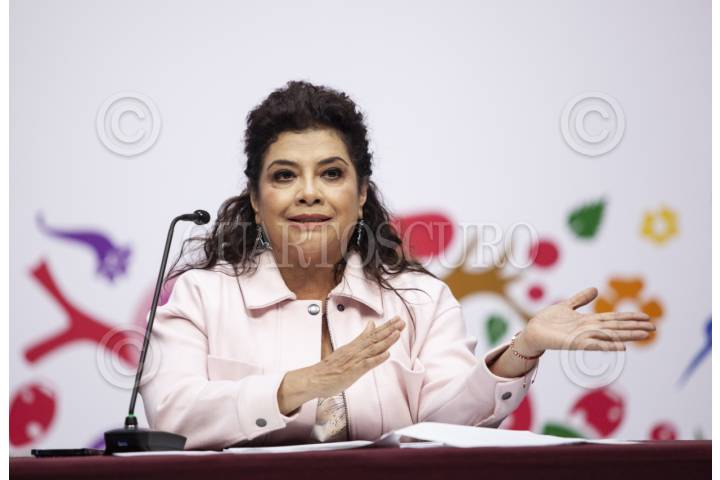 CIUDAD DE MÉXICO, 08JULIO2025.- Clara Brugada, Jefa de Gobierno, durante el Informe de Seguridad, que se llevo a cabo en el Antiguo Palacio del Ayuntamiento. FOTO: ANDREA MURCIA /CUARTOSCURO.COM