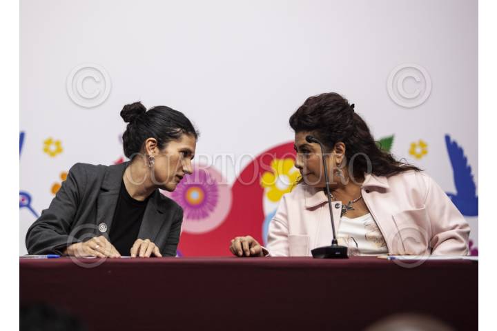 CIUDAD DE MÉXICO, 08JULIO2025.- Clara Brugada, Jefa de Gobierno, acompañada de Bertha Alcalde Luján, Fiscal general de justicia; durante Informe de Seguridad, que se llevo a cabo en el Antiguo Palacio del Ayuntamiento. FOTO: ANDREA MURCIA /CUARTOSCURO.COM