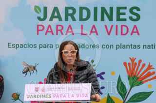 CIUDAD DE MÉXICO, 08JULIO2025.- Lourdes Paz Reyes, alcaldesa de Iztacalco, durante el arranque del proyecto “Jardines para la vida”, en el Parque Escuela Urbano Iztacalco. Esta iniciativa pretende replicar jardines con especies nativas para fomentar la polinización de las abejas. FOTO: MOISÉS PABLO/CUARTOSCURO.COM