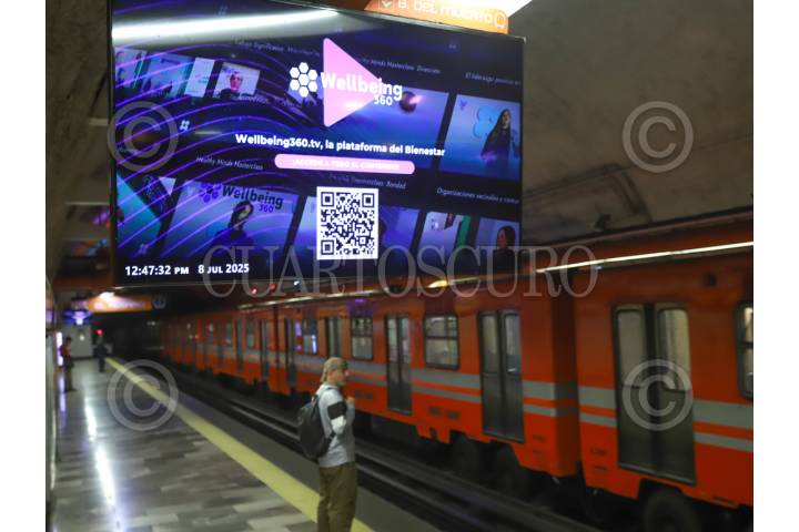 CIUDAD DE MÉXICO, 08JULIO2025.- El Sistema de transporte Colectivo Metro (STC) lanzó la campaña “Bienestar - Wellbeing 360” que comenzará a transmitirse en las pantallas de 70 estaciones del Metro, una cápsula de video que tendrá una duración aproximada de 20 segundos. Además, los usuarios podrán acceder de forma gratuita y mediante un código QR a la plataforma Wellbeing360.tv, la cual ofrecerá más de 100 conferencias de expertos internacionales sobre propósito de vida, gratitud, atención plena, meditación y salud emocional, aplicables tanto en la vida personal como familiar y profesional. FOTO: GRACIELA LÓPEZ/CUARTOSCURO.COM