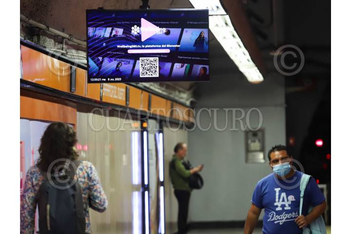 CIUDAD DE MÉXICO, 08JULIO2025.- El Sistema de transporte Colectivo Metro (STC) lanzó la campaña “Bienestar - Wellbeing 360” que comenzará a transmitirse en las pantallas de 70 estaciones del Metro, una cápsula de video que tendrá una duración aproximada de 20 segundos. Además, los usuarios podrán acceder de forma gratuita y mediante un código QR a la plataforma Wellbeing360.tv, la cual ofrecerá más de 100 conferencias de expertos internacionales sobre propósito de vida, gratitud, atención plena, meditación y salud emocional, aplicables tanto en la vida personal como familiar y profesional. FOTO: GRACIELA LÓPEZ/CUARTOSCURO.COM