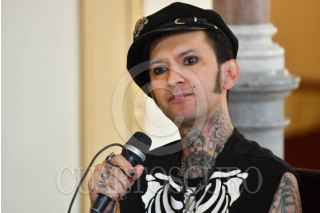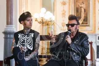 CIUDAD DE MÉXICO, 08JULIO2025.- Vicente Montes Rivera "Vince Monster", y Vicente Montes Ángeles "Vincent Van Rock", principales integrantes de la banda de rockabily "Rebel Cats", durante conferencia de prensa para dar detalles sobre su próxima presentación el 31 de julio en el Teatro de la Ciudad Esperanza Iris, con motivo de la celebración de sus 20 años de trayectoria.
