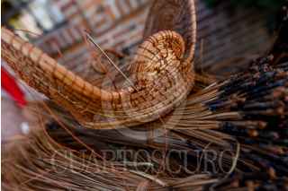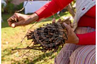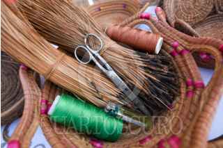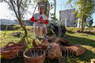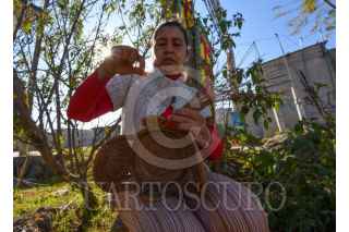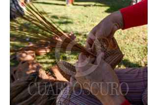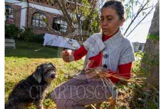 Adriana de Jesús Contreras recolecta hojas de pino, que lava y hierve para hacerlas flexibles. Con aguja e hilo de colores, teje a mano fruteros, tortilleros, canastas y bisutería con ocoxal. Cada pieza puede tomar desde un día hasta un mes, según su tamaño y detalle. En este proceso, participa toda su familia, desde la recolección hasta la venta de las artesanías. FOTO: CRISANTA ESPINOSA AGUILAR / CUARTOSCURO.COM