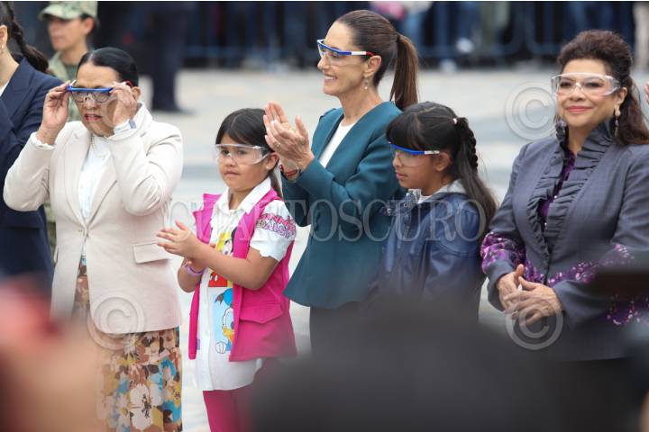 CIUDAD DE MÉXICO, 09JULIO2025.- Claudia Sheinbaum, presidenta de México, durante el evento del Día Internacional de la Destrucción de Armas de Fuego, la acompaña la jefa de gobierno, Clara Brugada y la secretaria de Gobernación, Rosa Icela Rodríguez. FOTO: DANIEL AUGUSTO/ CUARTOSCURO.COM