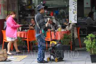 CIUDAD DE MÉXICO, 09JULIO2025.- Joven música toca a Elvis Presley en restaurantes de la calle Independencia para ganar dinero. FOTO: MOISÉS PABLO/CUARTOSCURO.COM