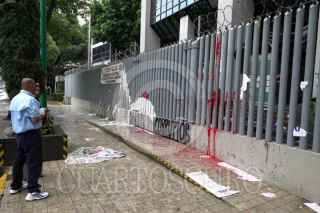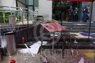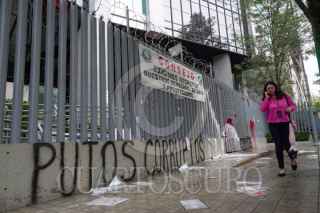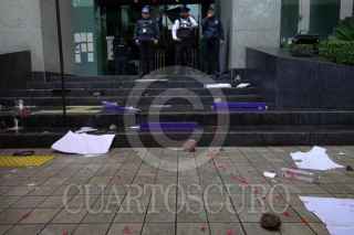 CIUDAD DE MÉXICO 10JULIO2025.- Manifestantes lanzaron pintura y realizaron destrozos a las afuerad de las oficinas de Juzgados de Distrito en Materia Penal del Poder Judicial de la Federación. FOTO: ROGELIO MORALES /CUARTOSCURO.COM