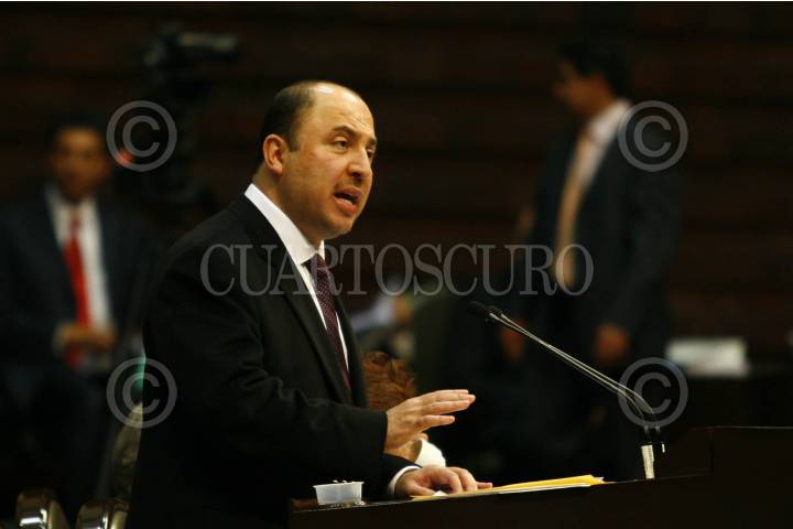 CHILPANCINGO, GUERRERO, 12NOVIEMBRE2007.- El diputado local del PRD, Ramiro Solorio Almazan, se brincó la reja para ingresar al Congreso local, luego de que le fuera negada la entrada por personal de seguridad del poder legislativo, argumentando que eran "ordenes" del oficial mayor, Luis Barroso Merlin. En la imagen, el diputado local Ramiro Solorio Almazan reclama al oficial mayor del Congreso local, Luis Barroso Merlin. FOTO: OSCAR ALVARADO/CUARTOSCURO.COM