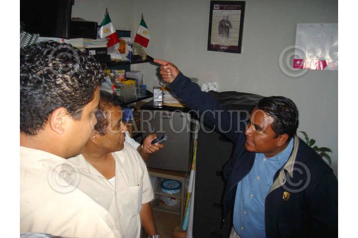 CHILPANCINGO, GUERRERO, 12NOVIEMBRE2007.- El diputado local del PRD, Ramiro Solorio Almazan, se brincó la reja para ingresar al Congreso local, luego de que le fuera negada la entrada por personal de seguridad del poder legislativo, argumentando que eran "ordenes" del oficial mayor, Luis Barroso Merlin. En la imagen, el diputado local Ramiro Solorio Almazan reclama al oficial mayor del Congreso local, Luis Barroso Merlin. FOTO: OSCAR ALVARADO/CUARTOSCURO.COM